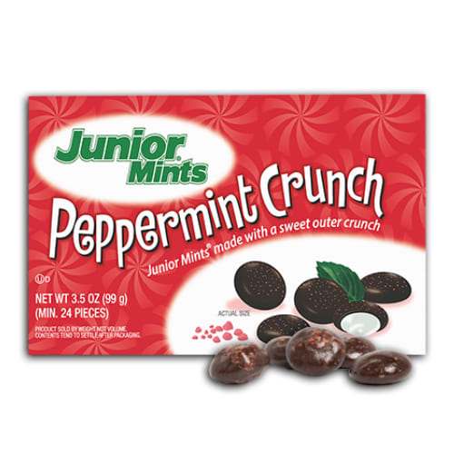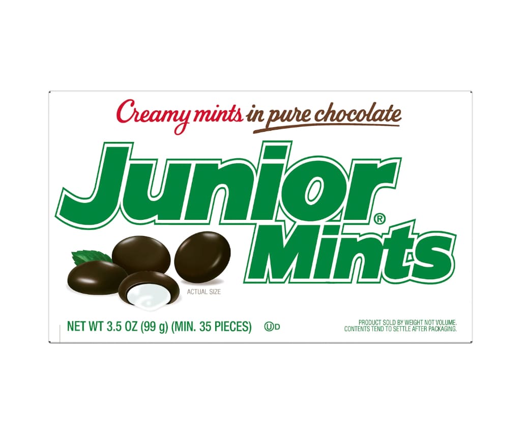 Junior Mints are crafted using real peppermint oil in their creamy fondant center, which provides that authentic, refreshing “cool” sensation that the brand is famous for.