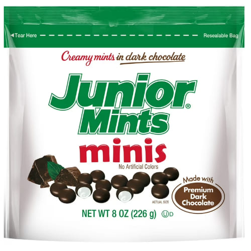 Experience the ultimate fusion of refreshing peppermint and rich dark chocolate with every bite of a Junior Mint.